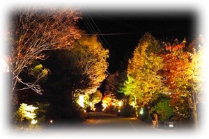 福地温泉では、紅葉シーズンに合わせて町並みライトアップを開催いたします。福地温泉のメイン通り(へんべ坂)一帯の木々をライトアップ。徐々に色付く紅葉をお楽しみください。